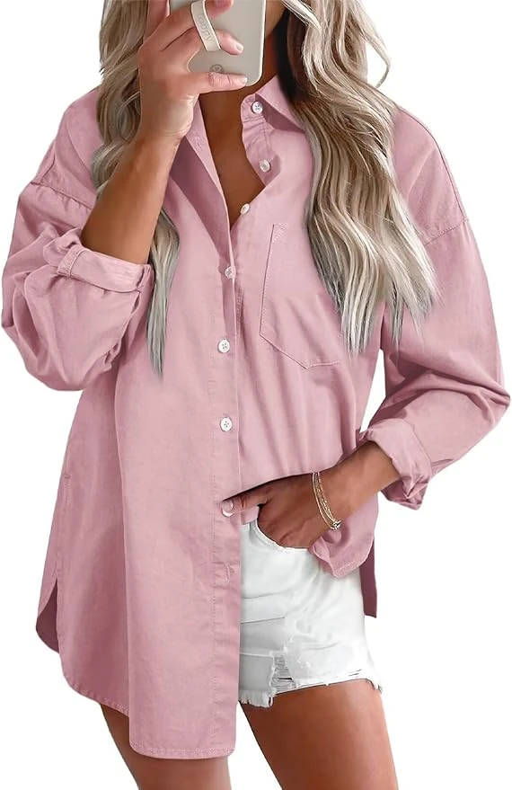 - Design: Button Front Closure, Long Sleeves with Button Cuffs, Boyfriend Style, Lapel Collar, Casual Loose Fit Denim Shirt.