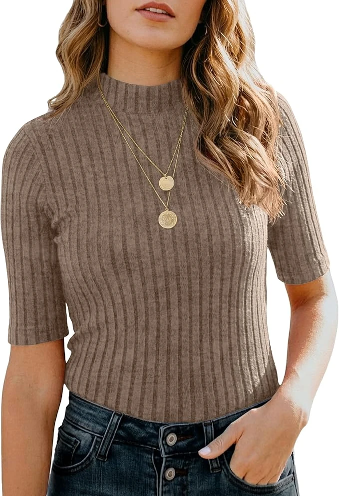 - 【Design】Features a sleek mock neck and short sleeve that hits above the elbow. This slim fit top is designed to enhance your silhouette comfortably